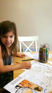 We did beautiful drawings and my daughter and I practice some hand lettering, that was also fun! I watched my 4-year-old doing 12 pages of her handwriting book and coloring every picture in those pages while my 7-year-old son celebrated losing his front tooth and talking funny.